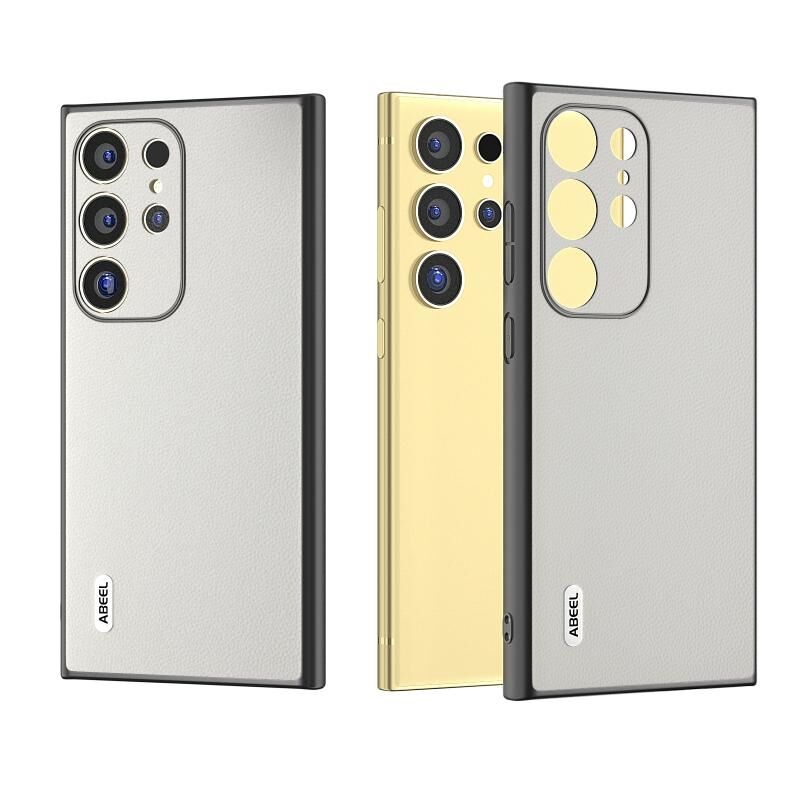 Θήκη τηλεφώνου από γνήσιο δέρμα ABEEL για Samsung Galaxy S24 Ultra 5G, κομψή σε μαύρο χρώμα με λευκή επένδυση. (Λευκό)