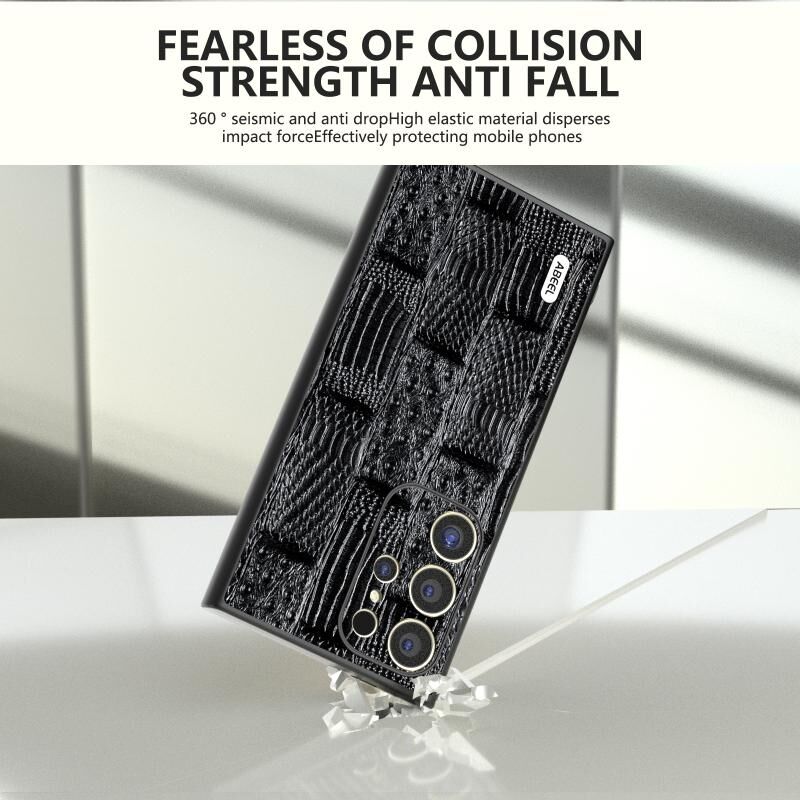 Θήκη τηλεφώνου Samsung Galaxy S24 Ultra 5G ABEEL από γνήσιο δέρμα, σειρά Mahjong με υφή (Μαύρο)