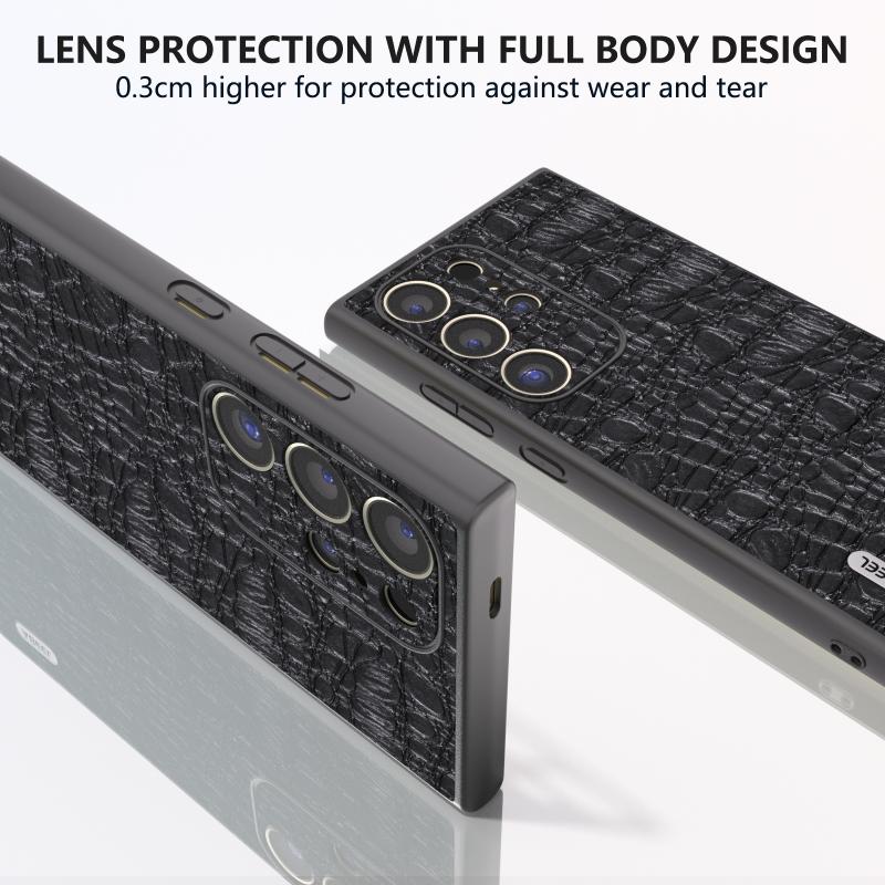 For Samsung Galaxy S24 Ultra 5G ABEEL Genuine Leather Sky Series Phone Case with Holder(Black)