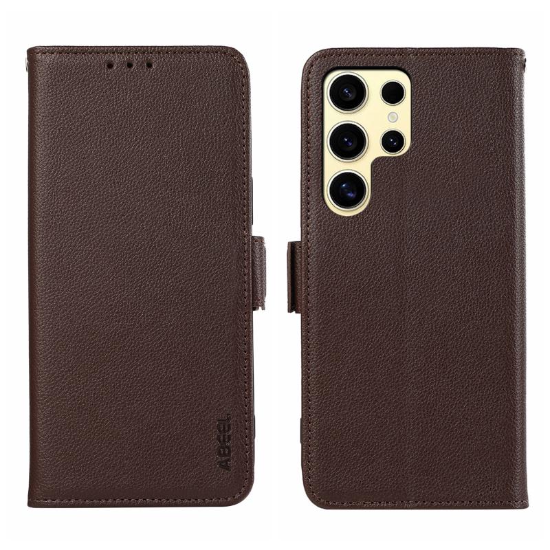 For Samsung Galaxy S24 Ultra 5G ABEEL Side-Magnetic Litchi Pattern Leather RFID Phone Case(Brown)