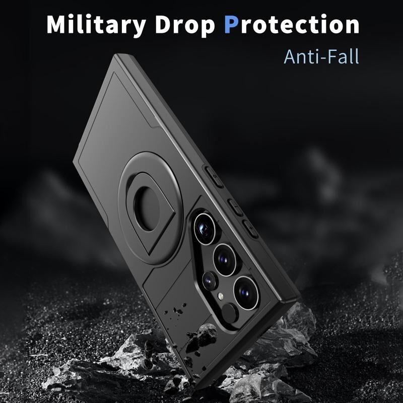 Θήκη τηλεφώνου για Samsung Galaxy S24 Ultra 5G με ενσωματωμένο δακτύλιο MagSafe και προστασία (Μαύρο)