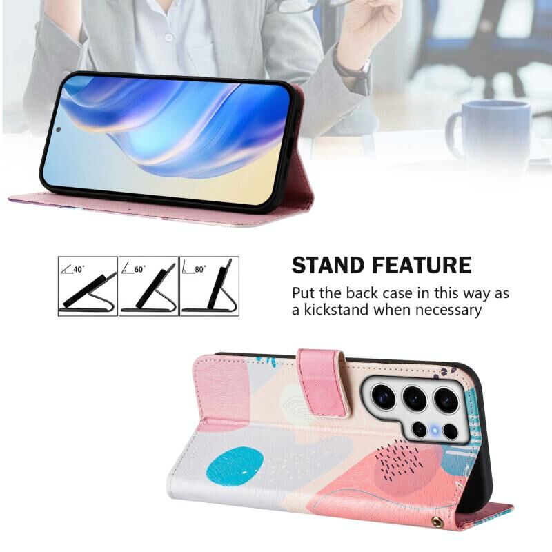 Θήκη τηλεφώνου Samsung Galaxy S24 Ultra 5G από δέρμα με σχέδιο ζωγραφικής και πολύχρωμο (Κόκκινο)