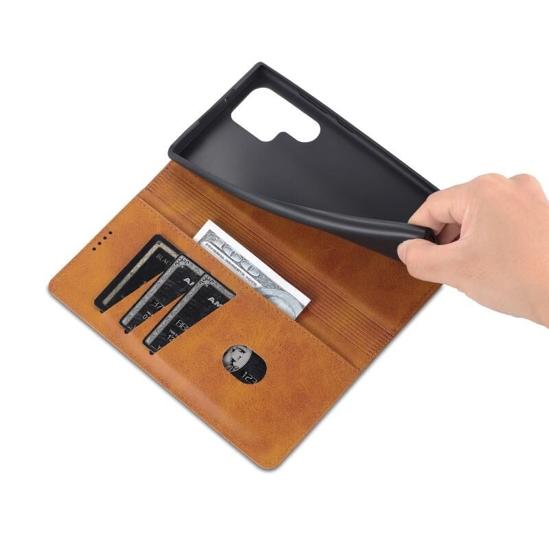 Για Samsung Galaxy S24 Ultra 5G AZNS Μαγνητικό μοσχάρι υφή Flip δέρμα τηλέφωνο υπόθεση (ανοιχτό καφέ) (Ανοιχτό καφέ)