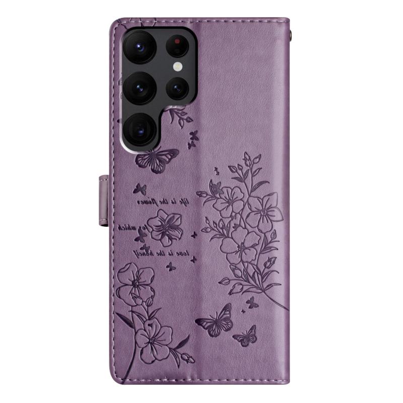 For Samsung Galaxy S24 Ultra 5G Butterflies and Flowers Leather Phone Case(Purple)