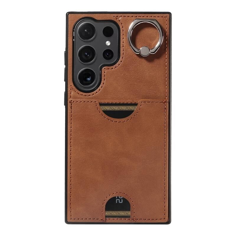 Για Samsung Galaxy S24 Ultra 5G Calf Υφή κάρτα Slot Ring κάτοχος θήκη τηλεφώνου (καφέ)