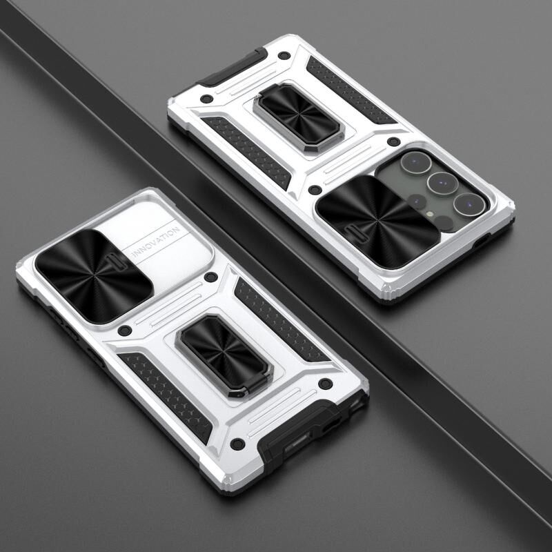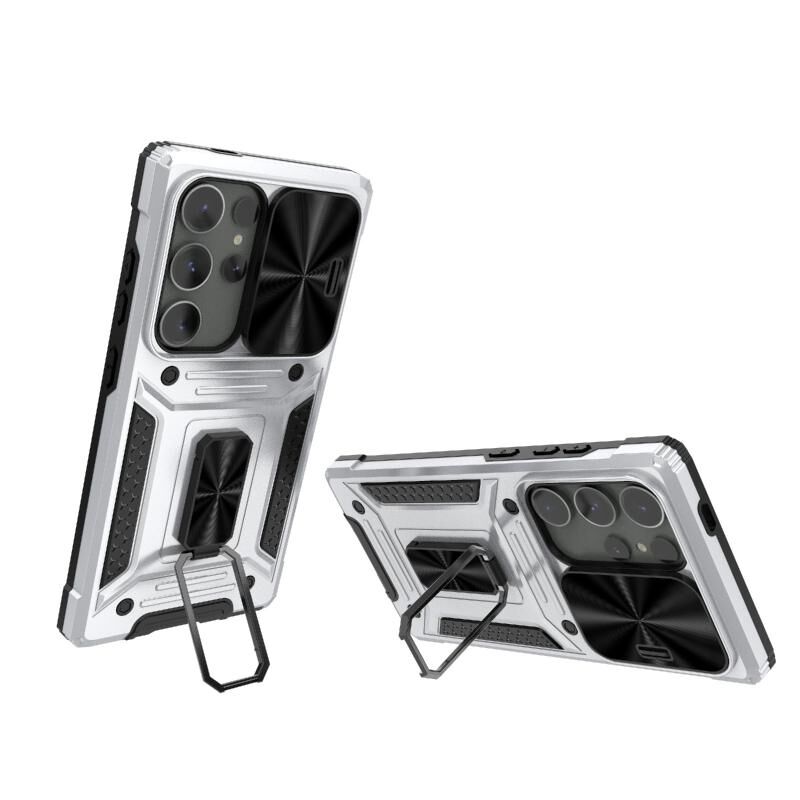 Για Samsung Galaxy S24 Ultra 5G Camshield ρομπότ TPU υβριδικό PC τηλέφωνο υπόθεση (ασημί)