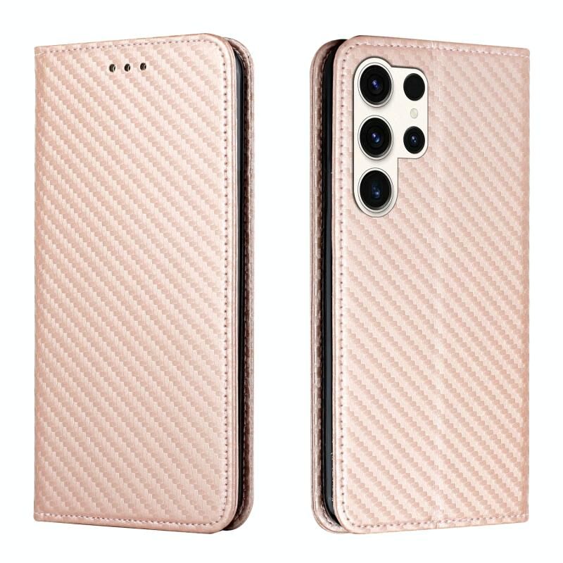 Για Samsung Galaxy S24 Ultra 5G Carbon Fiber υφή Flip κάτοχος δερμάτινη θήκη τηλεφώνου (Rose Gold)