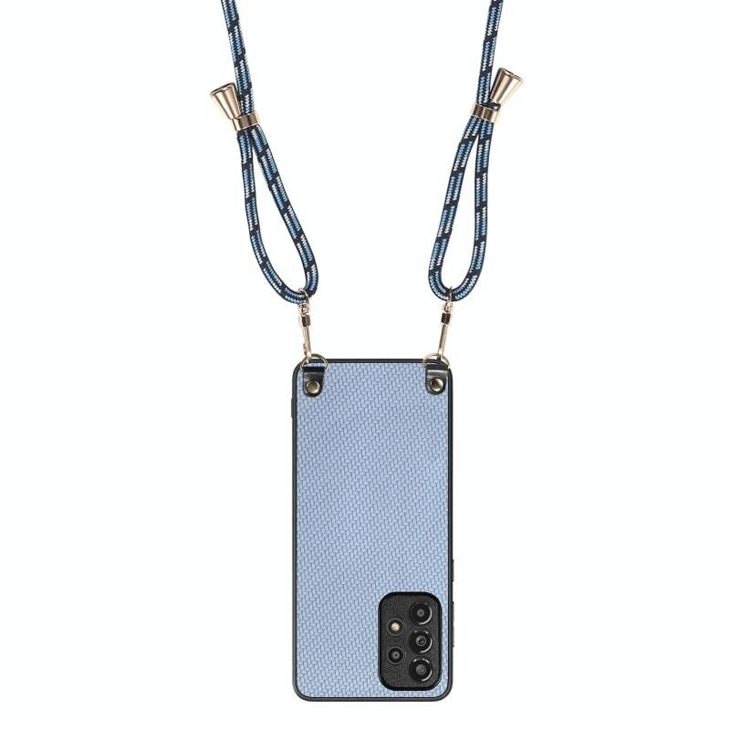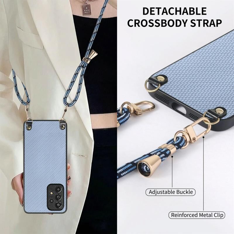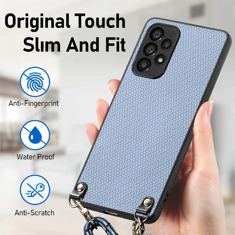 Για Samsung Galaxy S24 Ultra 5G Carbon Fiber Texture δέρμα πίσω κάλυμμα τηλέφωνο υπόθεση με λουράκι σταυρού (μπλε)