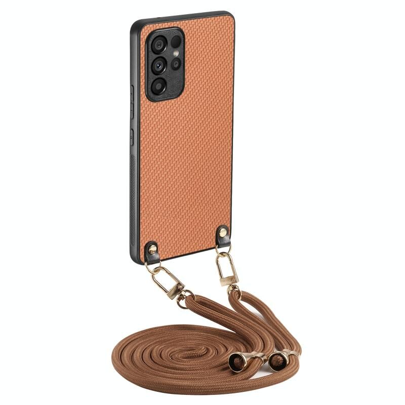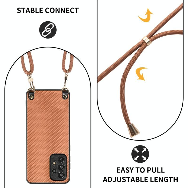 Για Samsung Galaxy S24 Ultra 5G Carbon Fiber Texture δέρμα πίσω κάλυμμα τηλέφωνο υπόθεση με λουράκι σταυρού (καφέ)