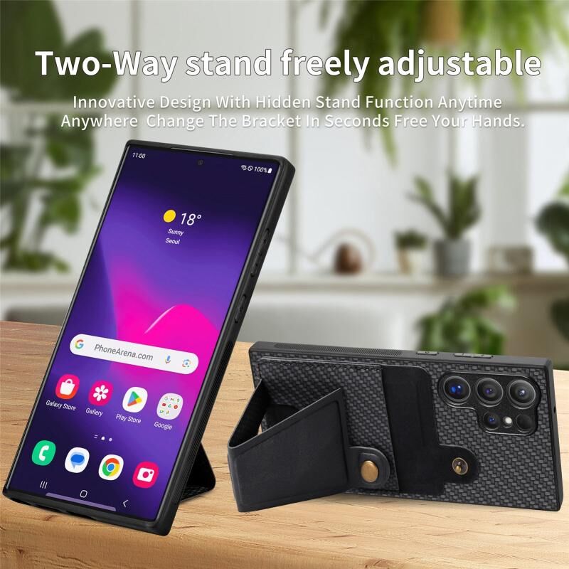 Για Samsung Galaxy S24 Ultra 5G Carbon Fiber πορτοφόλι Flip κάρτα K-σχήμα κάτοχος θήκη τηλεφώνου (Μαύρο)