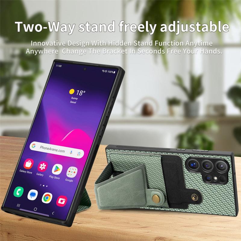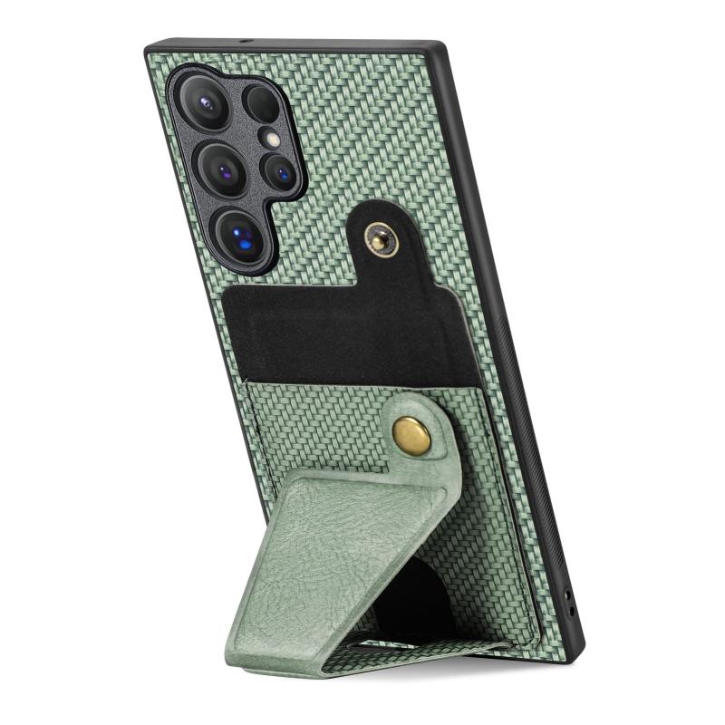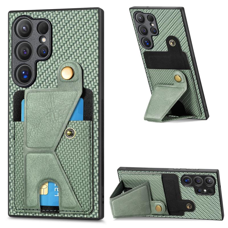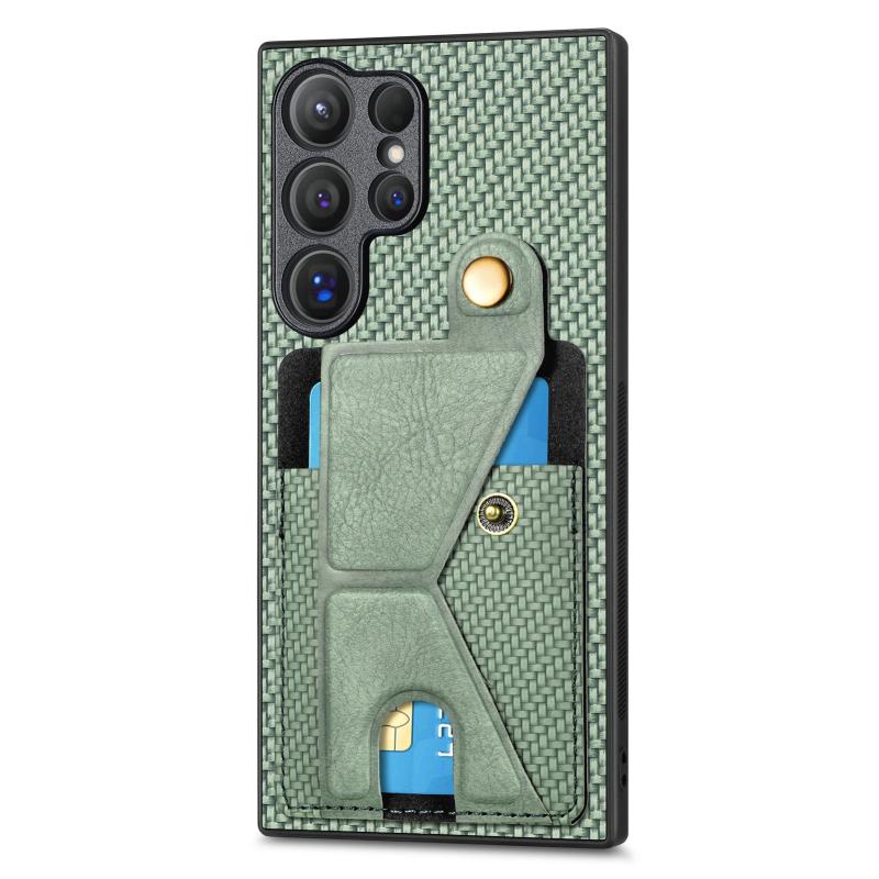 For Samsung Galaxy S24 Ultra 5G Carbon Fiber Wallet Flip Card K-shaped Holder Phone Case(Green)