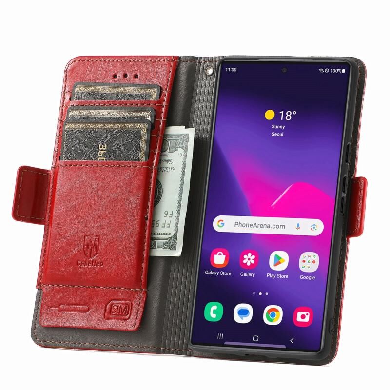 Για Samsung Galaxy S24 Ultra 5G CaseNeo Splicing Διπλή μαγνητική πόρπη δερμάτινη θήκη τηλεφώνου (Κόκκινο)