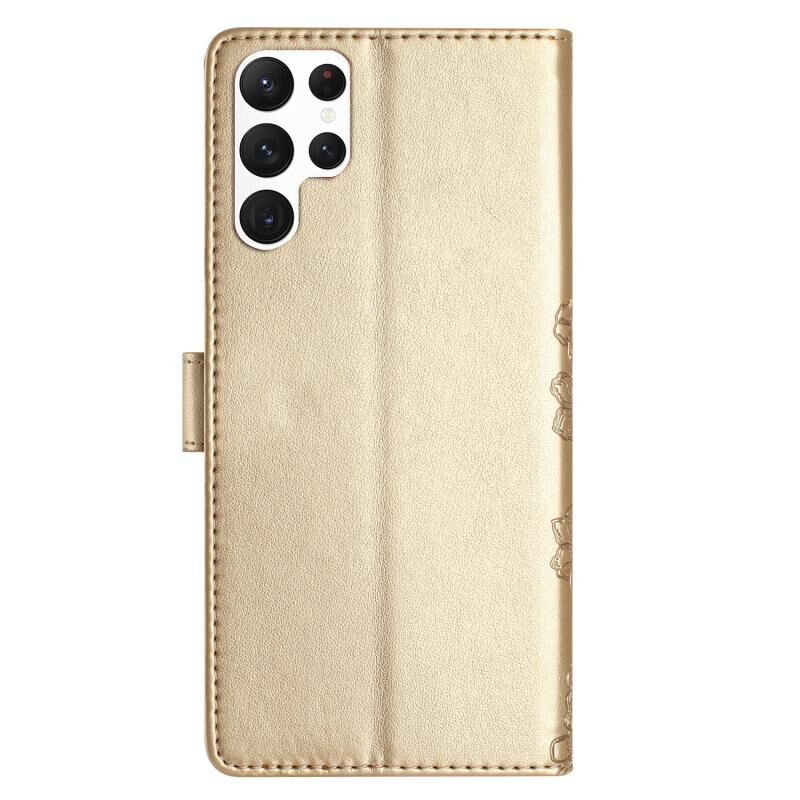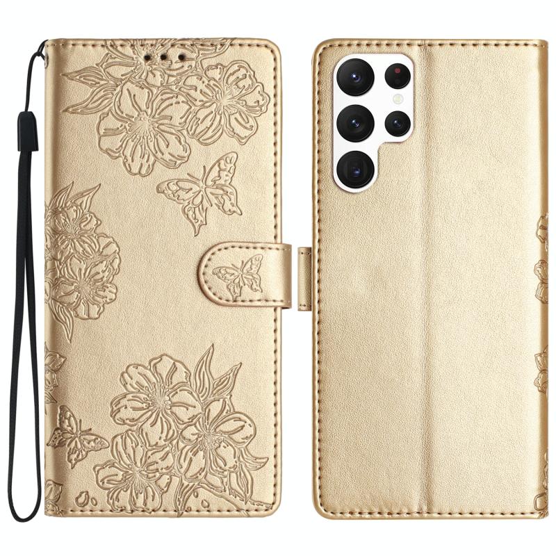 Θήκη Samsung Galaxy S24 Ultra 5G με σχέδιο Cherry Blossom & Butterfly από PU (Χρυσό)