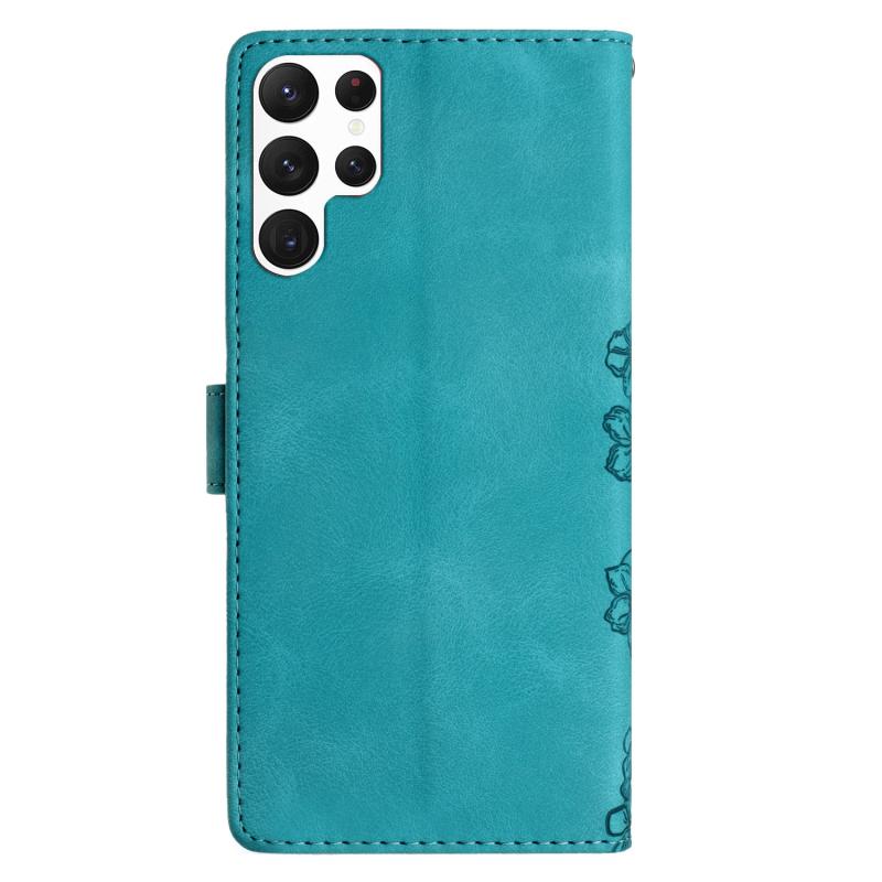 Θήκη Samsung Galaxy S24 Ultra 5G με σχέδιο Cherry Blossom & Butterfly από PU (Πράσινο)