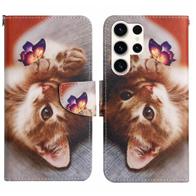 Θήκη τηλεφώνου Samsung Galaxy S24 Ultra 5G από δέρμα με έγχρωμο σχέδιο (Πεταλούδα Γάτα)