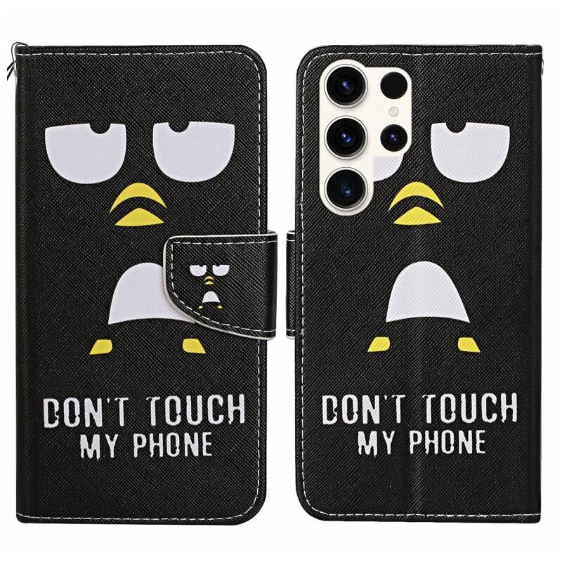 Θήκη τηλεφώνου Samsung Galaxy S24 Ultra 5G από δέρμα με έγχρωμο σχέδιο (Πιγκουίνος)
