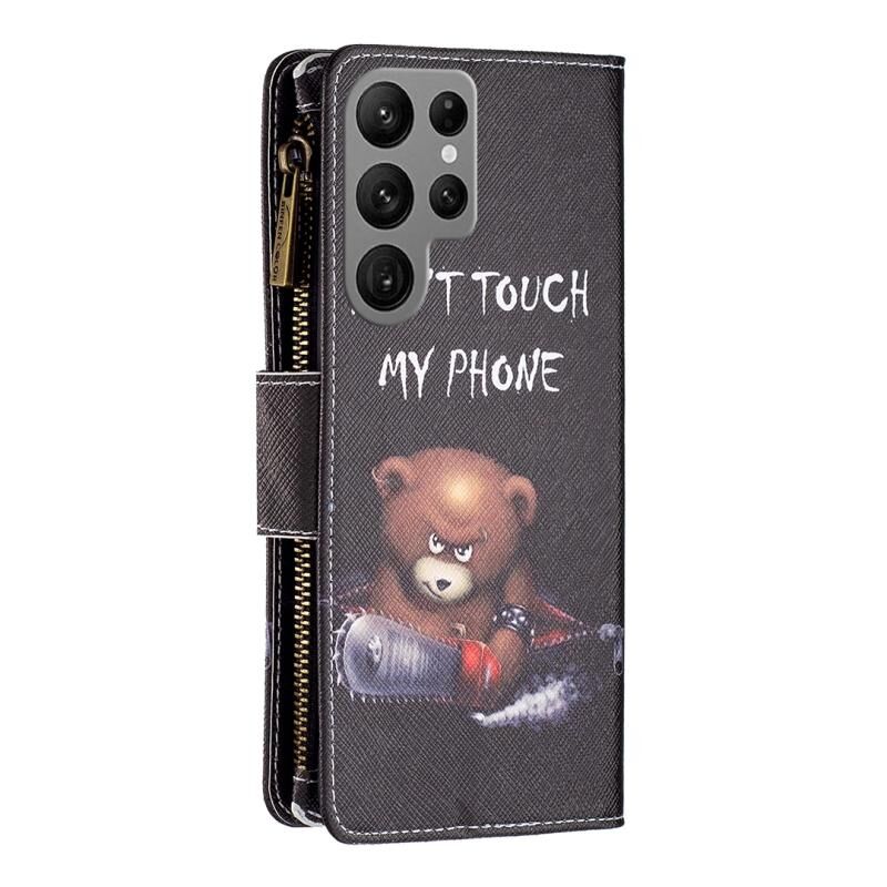For Samsung Galaxy S24 Ultra 5G Colored Drawing Pattern Zipper Leather Phone Case(Bear)