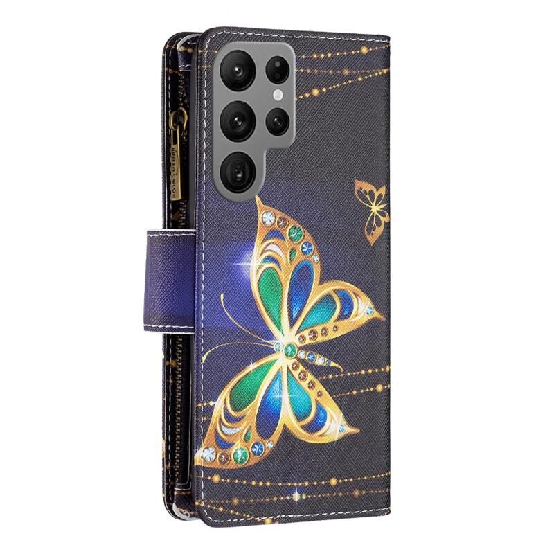 For Samsung Galaxy S24 Ultra 5G Colored Drawing Pattern Zipper Leather Phone Case(Big Butterfly)