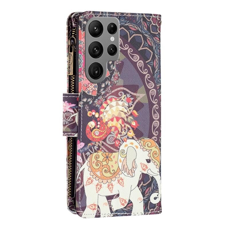 Θήκη τηλεφώνου Samsung Galaxy S24 Ultra 5G από δέρμα με φερμουάρ και πολύχρωμο σχέδιο (Λουλούδι Ελέφαντας)