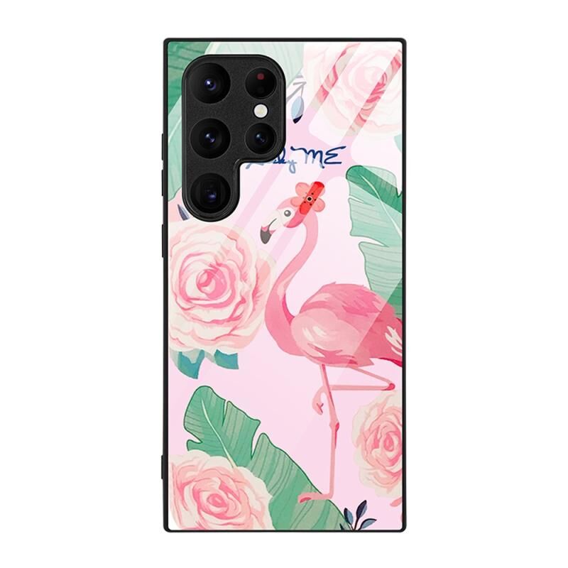 Θήκη τηλεφώνου από χρωματιστό ζωγραφιστό γυαλί για Samsung Galaxy S24 Ultra 5G (Φλαμίνγκο)