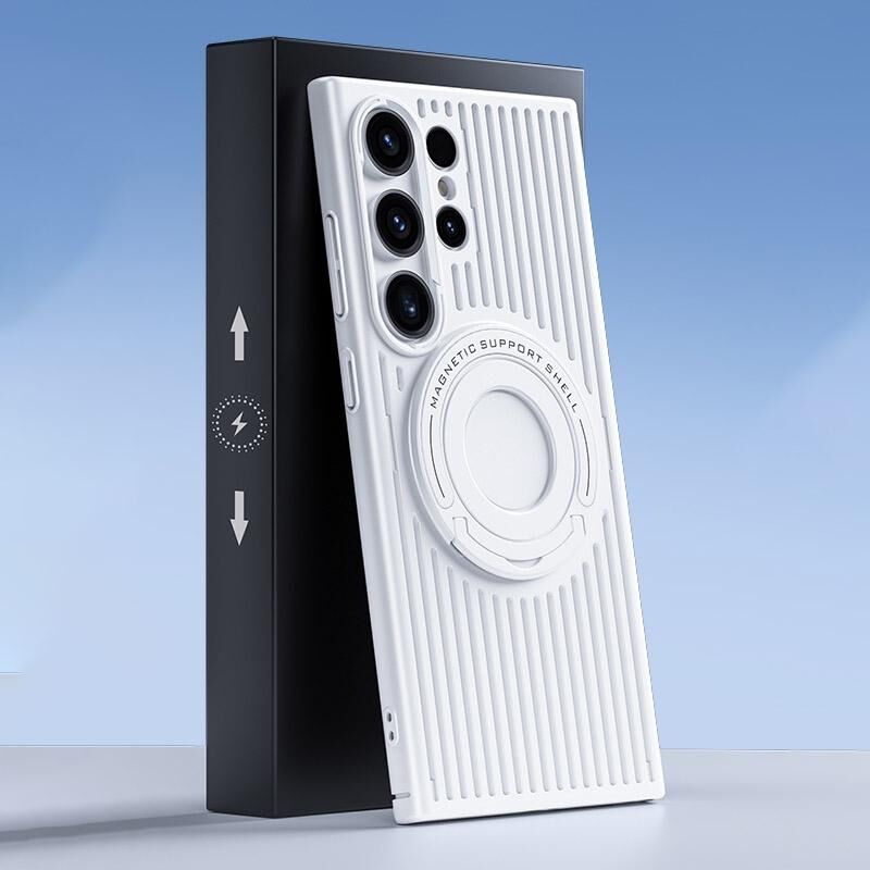 Θήκη κινητού τηλεφώνου PC με μαγνητικό δακτύλιο MagSafe και ψύξη για Samsung Galaxy S24 Ultra 5G (Λευκό)