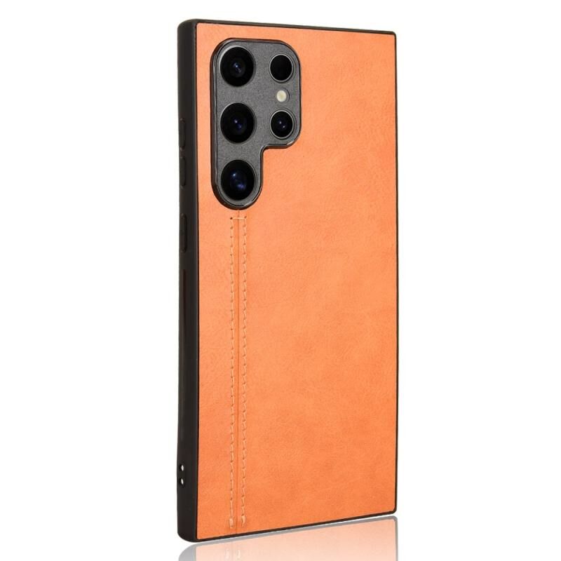Για Samsung Galaxy S24 Ultra 5G Αγελάδα μοτίβο ραπτικής πίσω κάλυμμα τηλέφωνο υπόθεση (Πορτοκαλί)
