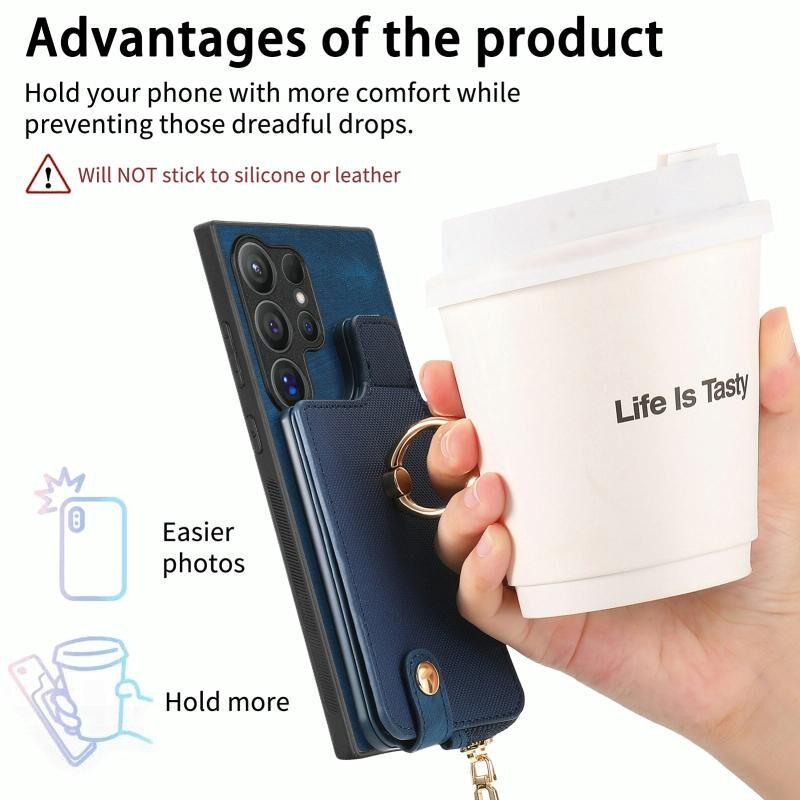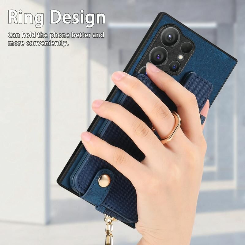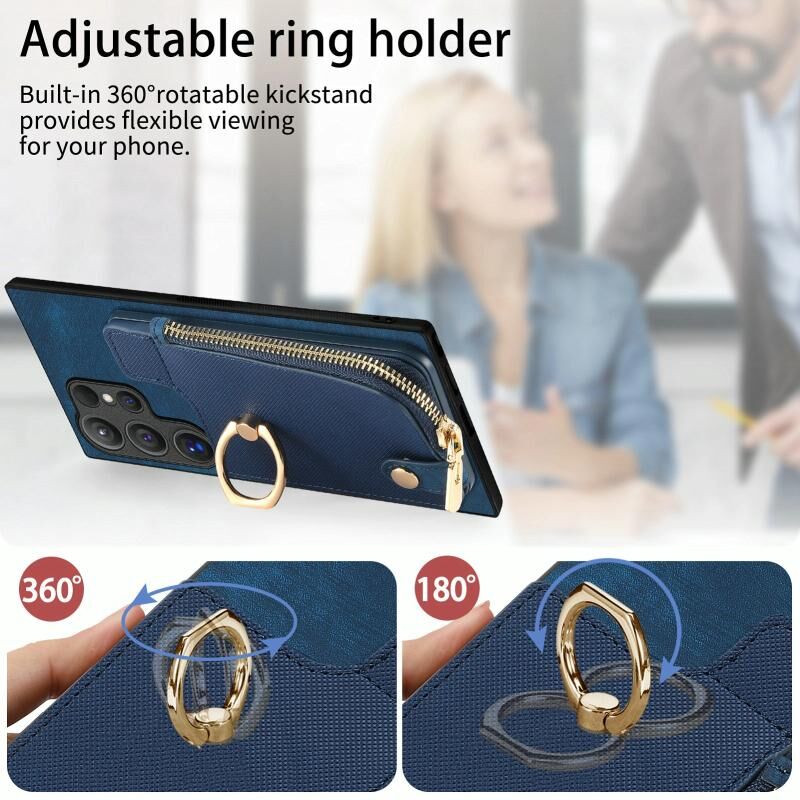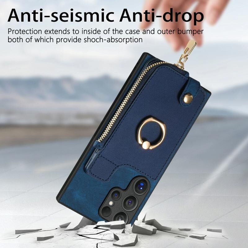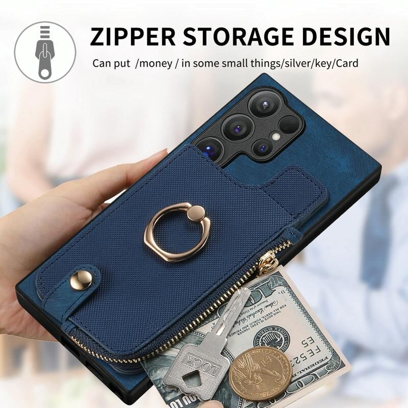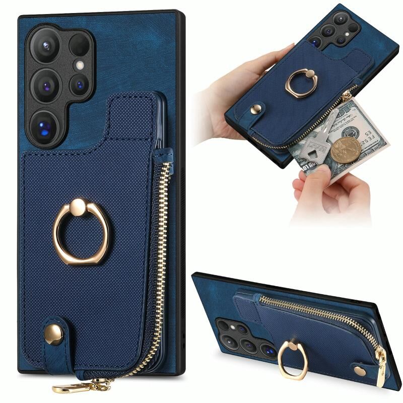 Για Samsung Galaxy S24 Ultra 5G Cross Δερμάτινο δαχτυλίδι κάθετη φερμουάρ πορτοφόλι πίσω υπόθεση τηλεφώνου (μπλε)