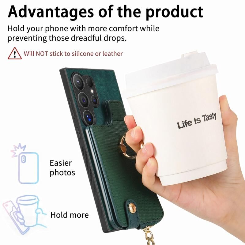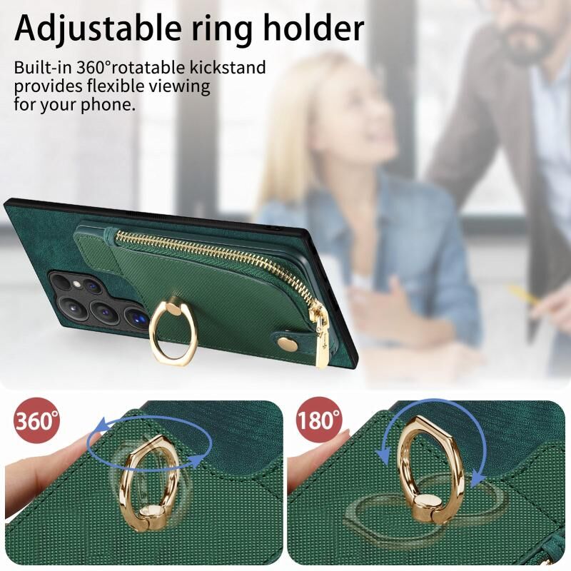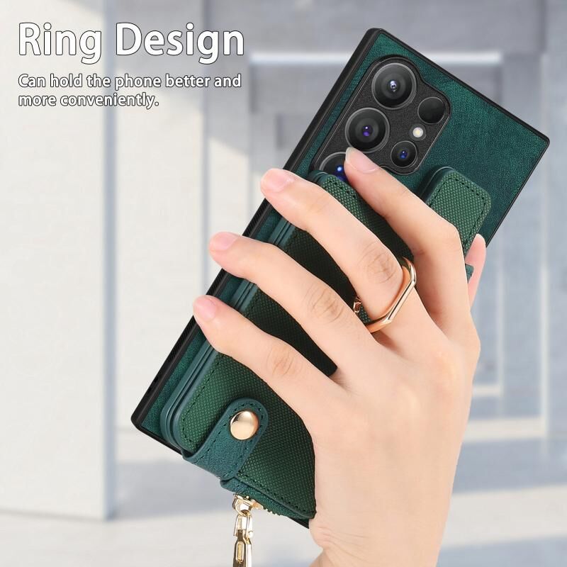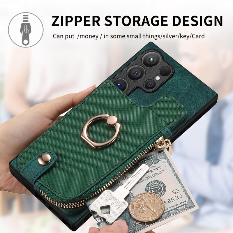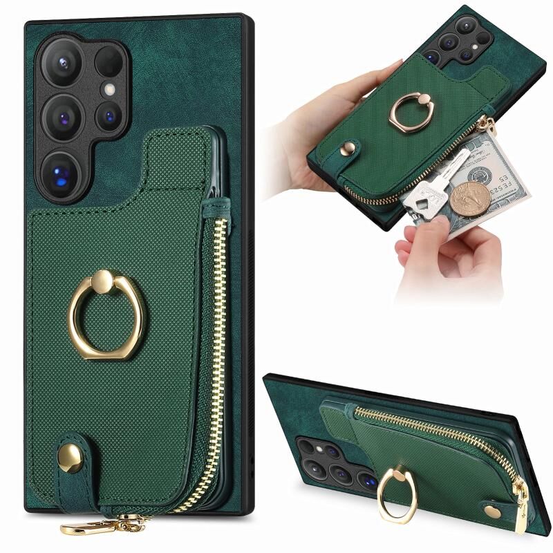 Για Samsung Galaxy S24 Ultra 5G Cross Δερμάτινο δαχτυλίδι κάθετη φερμουάρ πορτοφόλι πίσω υπόθεση τηλεφώνου (πράσινο)