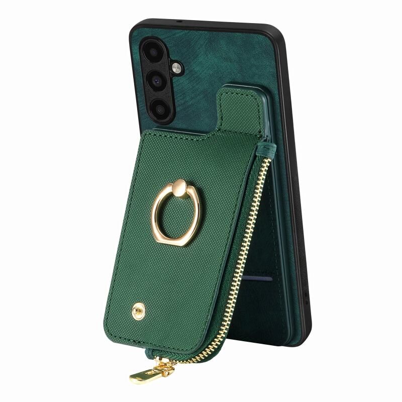 Για Samsung Galaxy S24 Ultra 5G Cross Δερμάτινο δαχτυλίδι κάθετη φερμουάρ πορτοφόλι πίσω υπόθεση τηλεφώνου (πράσινο)