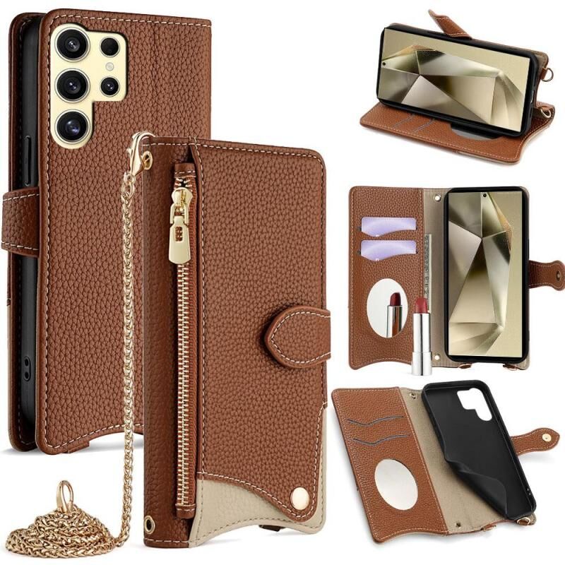 Για Samsung Galaxy S24 Ultra 5G Crossbody αλυσίδα Fishtail Litchi δέρμα τηλέφωνο υπόθεση (καφέ)