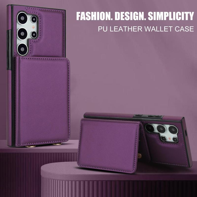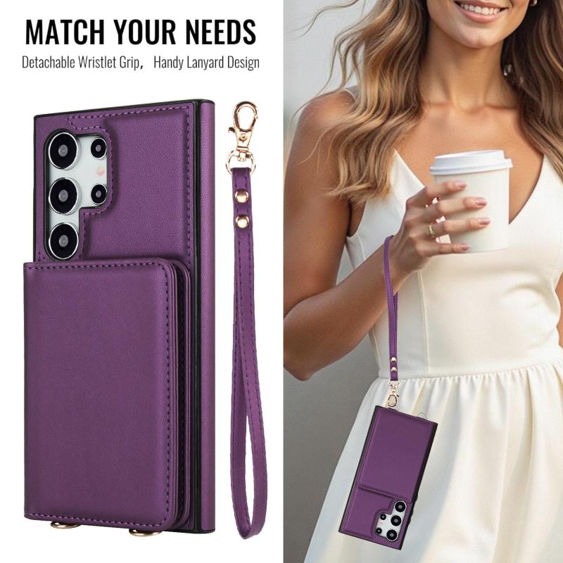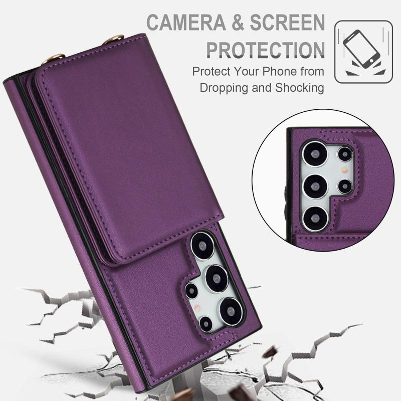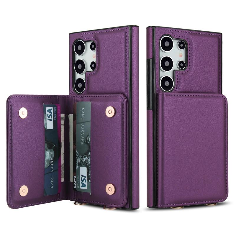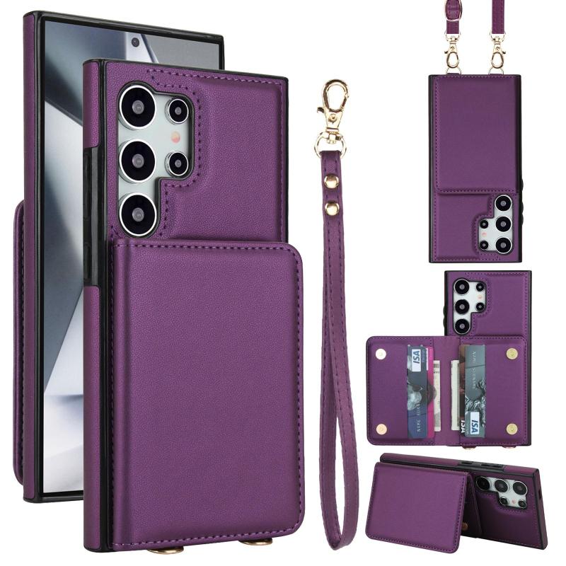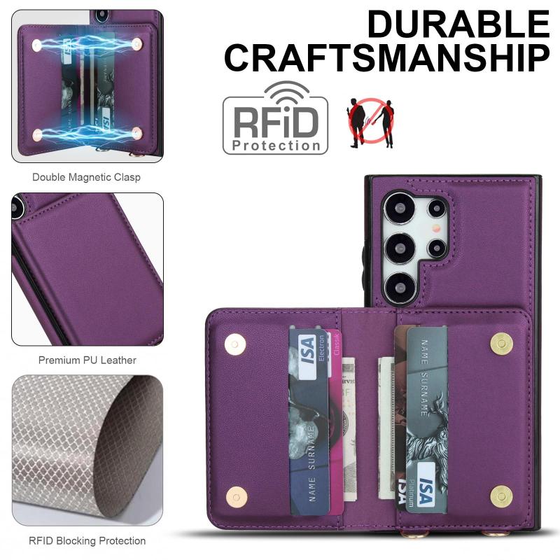 For Samsung Galaxy S24 Ultra 5G Crossbody Dual-buckle Wallet RFID Back Leather Phone Case(Dark Purple)