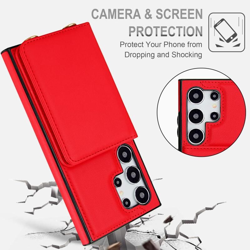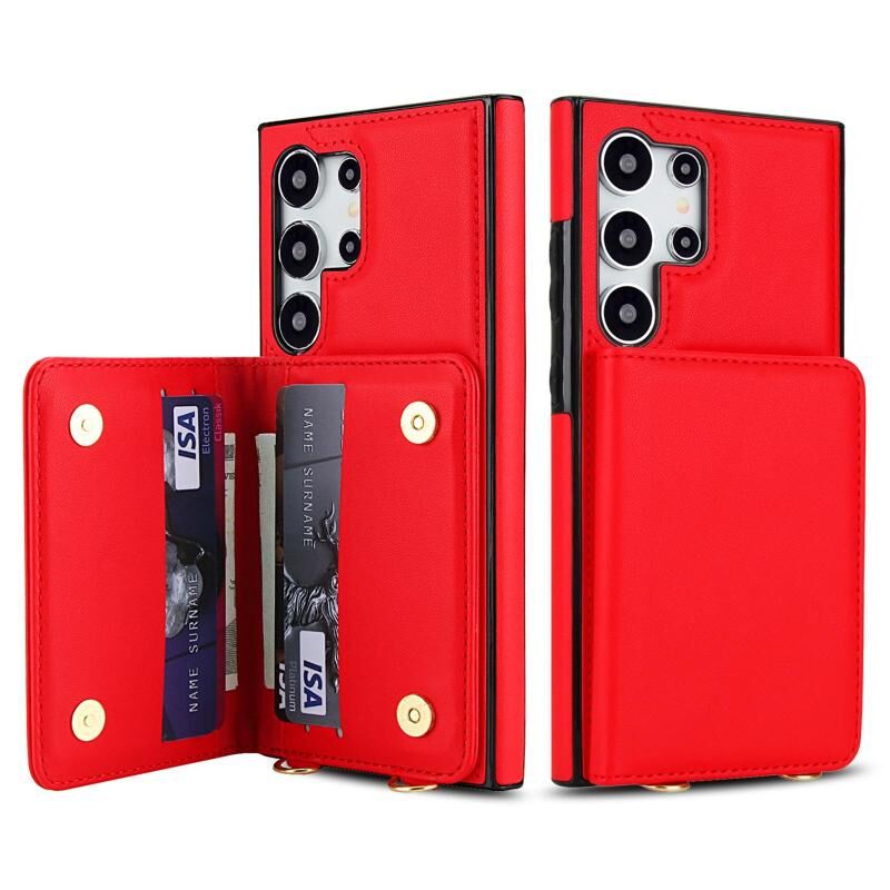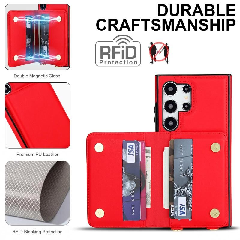 For Samsung Galaxy S24 Ultra 5G Crossbody Dual-buckle Wallet RFID Back Leather Phone Case(Red)