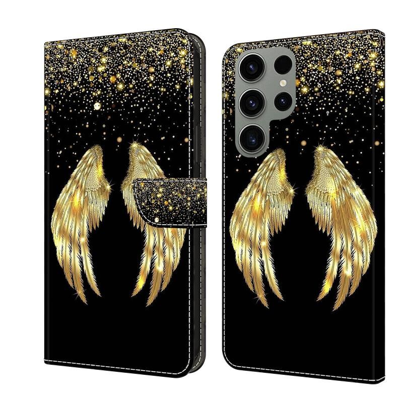 Θήκη κινητού τηλεφώνου Samsung Galaxy S24 Ultra 5G Crystal 3D αντικραδασμική προστατευτική από δέρμα (Ροζ πεταλούδα στο κάτω μέρος)