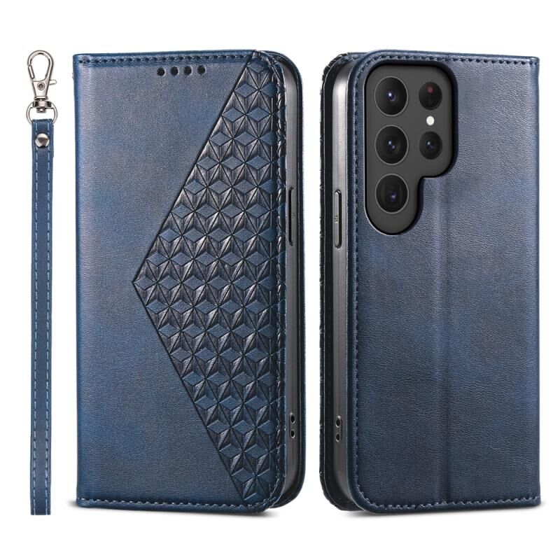 Για Samsung Galaxy S24 Ultra 5G Cubic Grid Calf Texture μαγνητική δερμάτινη θήκη τηλεφώνου (μπλε)