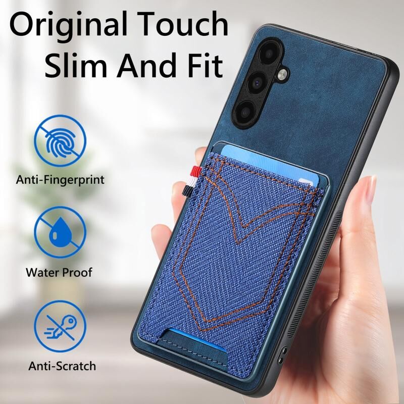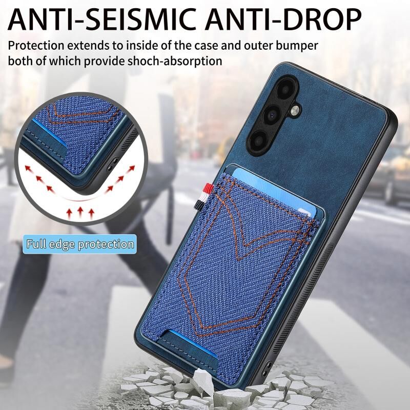 Για Samsung Galaxy S24 Ultra 5G Denim Υφή δέρμα δέρμα τηλέφωνο υπόθεση με υποδοχή κάρτας (μπλε)