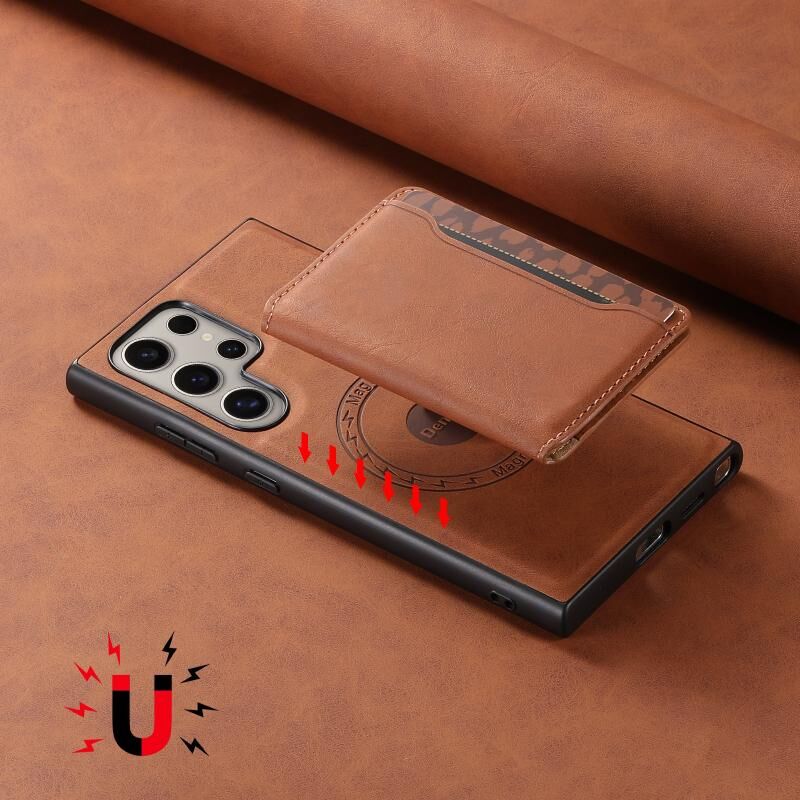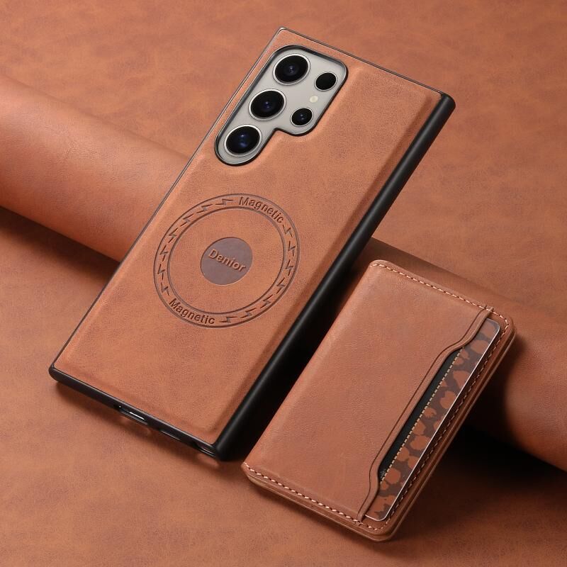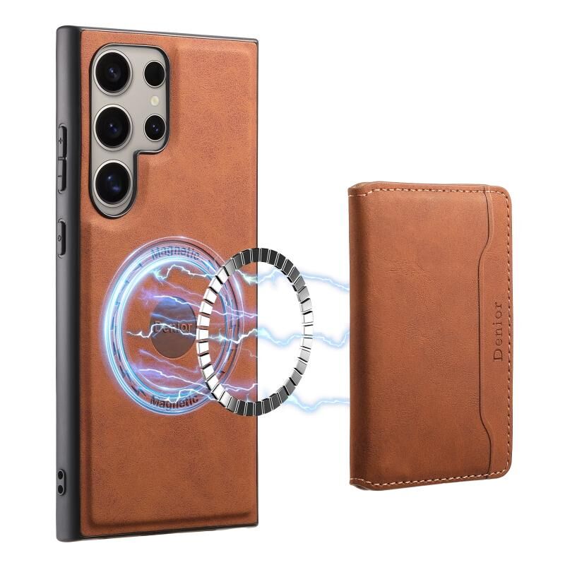 Θήκη τηλεφώνου Samsung Galaxy S24 Ultra 5G Denior D13 με υφή retro δέρματος και θήκη καρτών MagSafe (Μπλε) (Καφέ)