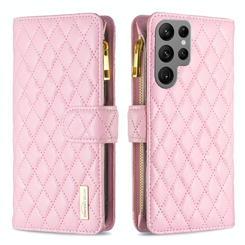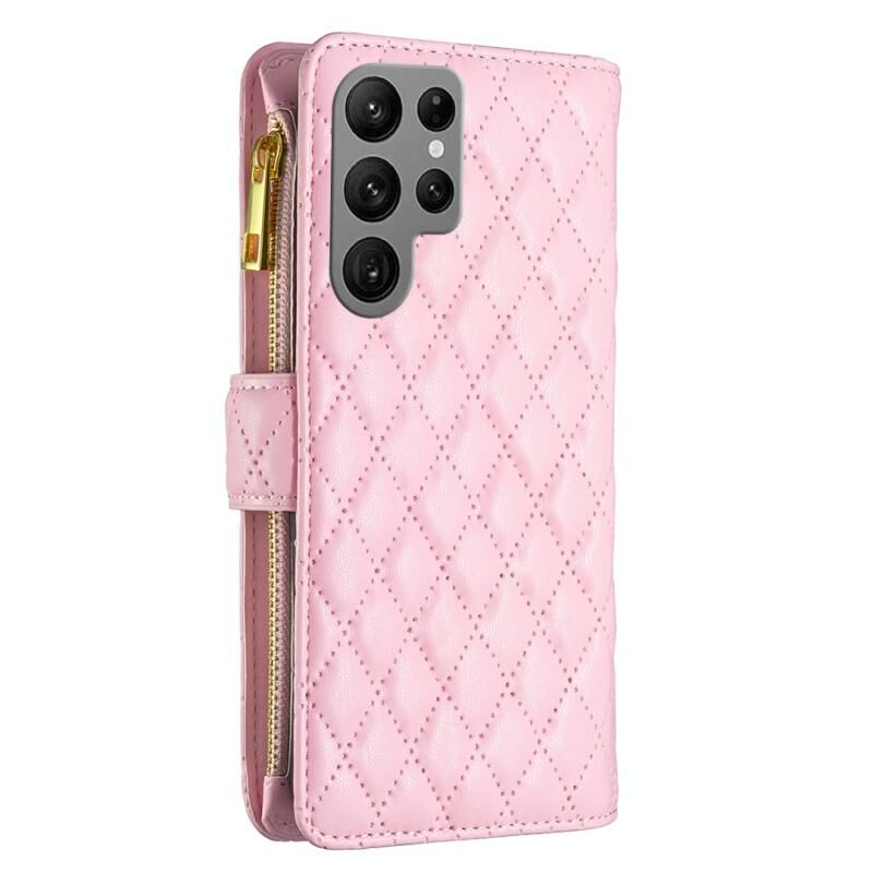 Για Samsung Galaxy S24 Ultra 5G Diamond Lattice φερμουάρ πορτοφόλι δέρμα Flip υπόθεση τηλεφώνου (ροζ)
