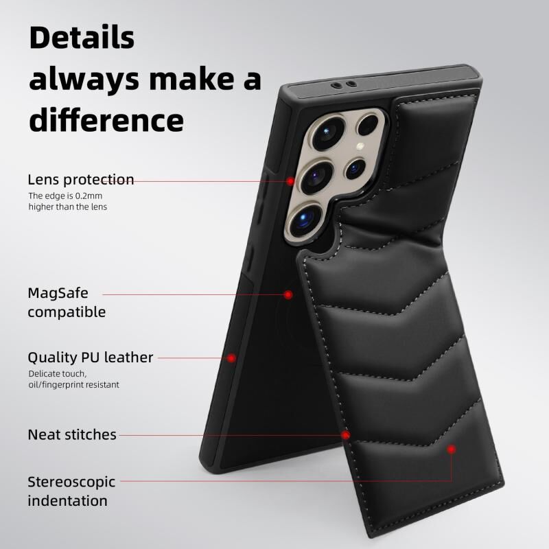 Θήκη κινητού τηλεφώνου Samsung Galaxy S24 Ultra 5G με κάρτες και MagSafe, τύπου μπουφάν (Μαύρο)