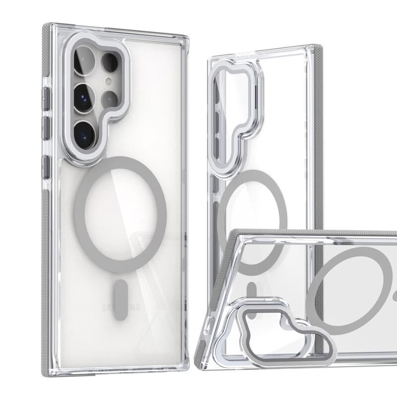 Θήκη κινητού τηλεφώνου για Samsung Galaxy S24 Ultra 5G, υβριδική από ακρυλικό και TPU, διαφανής διχρωμία, με MagSafe και προστασία φακού, με βάση στήριξης (Μαύρο).