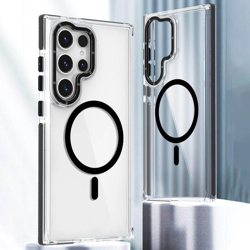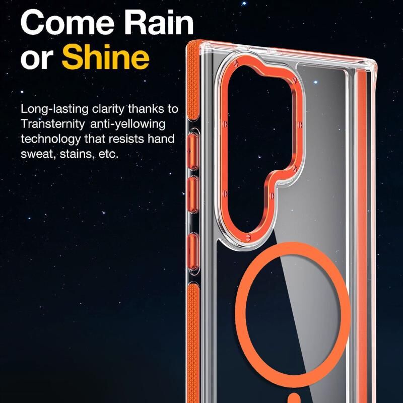 Θήκη κινητού τηλεφώνου Samsung Galaxy S24 Ultra 5G, υβριδική από ακρυλικό TPU με MagSafe, διαφανής διχρωμία (Πορτοκαλί)