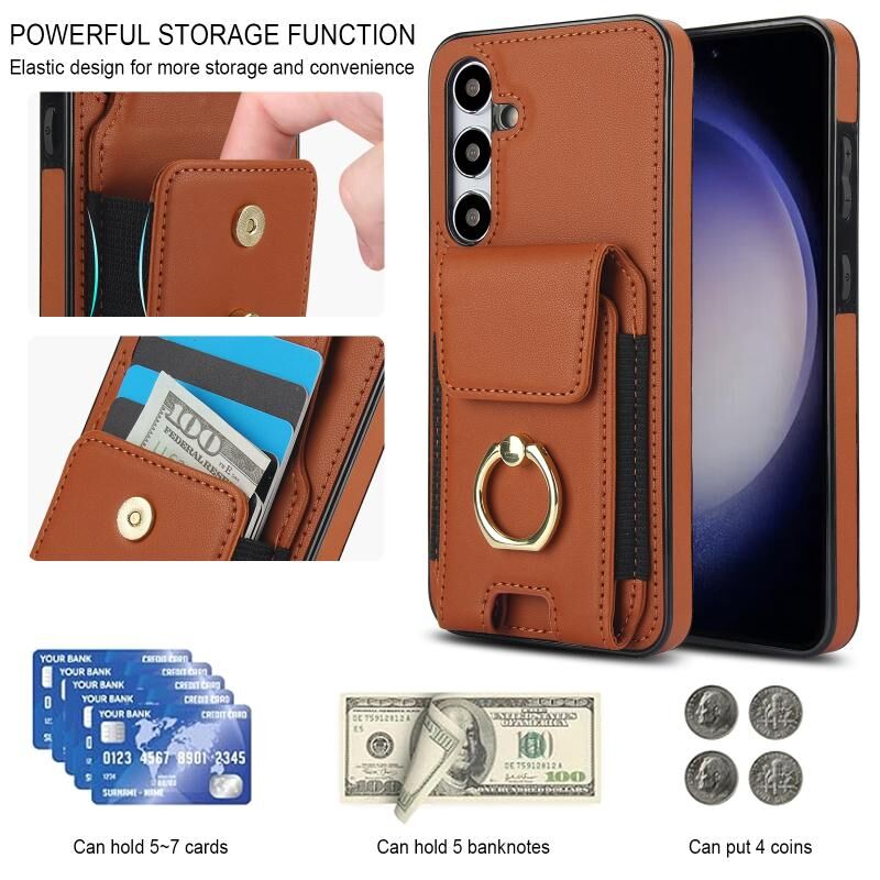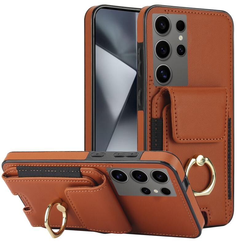 Για Samsung Galaxy S24 Ultra 5G ελαστική κάρτα τσάντα δαχτυλίδι τσάντα κάτοχος υπόθεση τηλεφώνου (Καφέ)