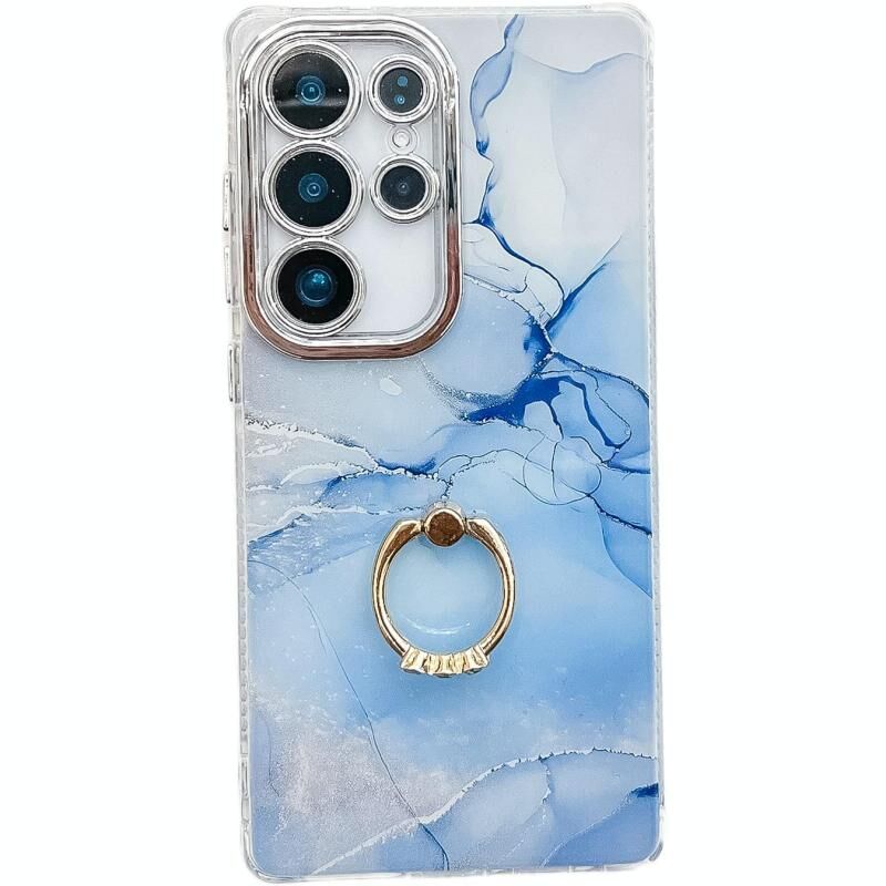Θήκη τηλεφώνου με δακτύλιο για Samsung Galaxy S24 Ultra 5G, με ηλεκτρολυτική μαρμάρινη υφή (Χρυσό-Λευκό S1)