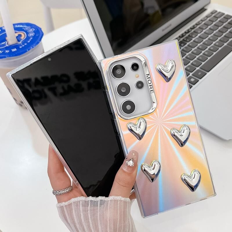 Θήκη κινητού τηλεφώνου TPU με λέιζερ 5 καρδιών και ηλεκτρολυτική επίστρωση για Samsung Galaxy S24 Ultra 5G (Ροή νερού)