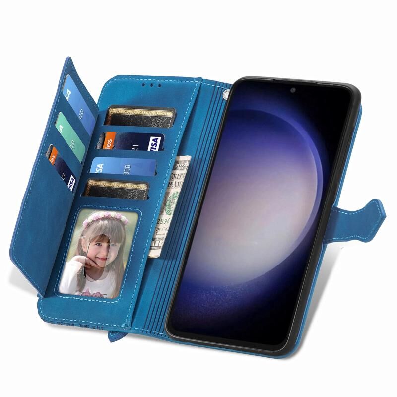 Για Samsung Galaxy S24 Ultra 5G ανάγλυφο λουλούδι φερμουάρ δερμάτινη θήκη τηλεφώνου (μπλε)