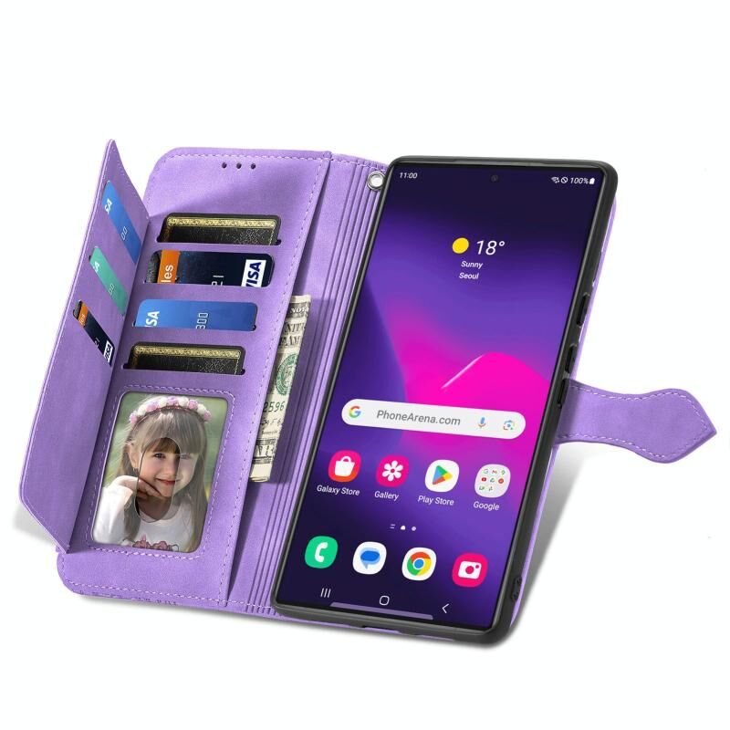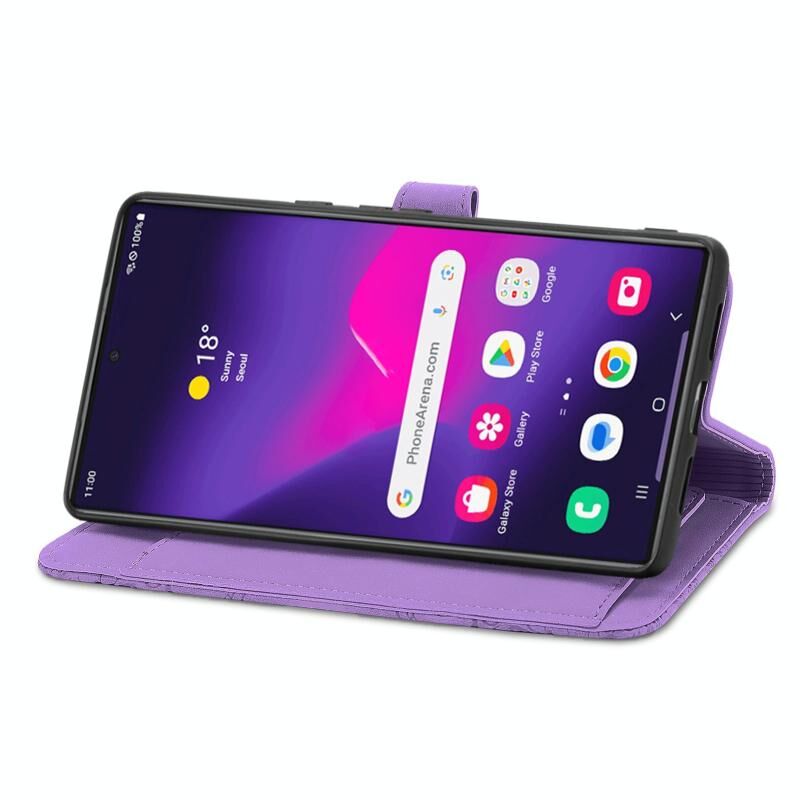 Για Samsung Galaxy S24 Ultra 5G ανάγλυφο λουλούδι φερμουάρ δερμάτινη θήκη τηλεφώνου (μωβ)