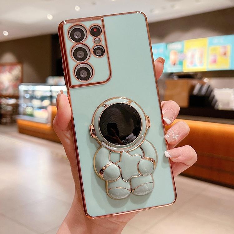 For Samsung Galaxy S24 Ultra 5G Embrace Stars Electroplating Astronaut Holder Phone Case(Green)