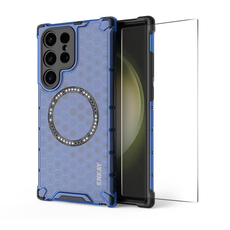 Θήκη κινητού τηλεφώνου Samsung Galaxy S24 Ultra 5G ENKAY Hat-Prince Honeycomb MagSafe ανθεκτική στις κρούσεις με προστατευτική μεμβράνη 0.18mm (Λευκό) (Μπλε)