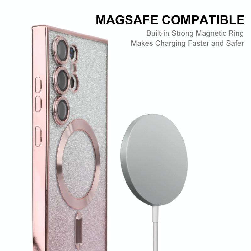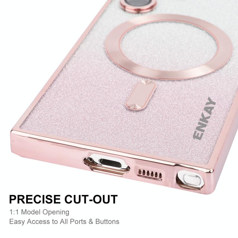 Θήκη κινητού τηλεφώνου Samsung Galaxy S24 Ultra 5G ENKAY Hat-Prince Μαγνητική με Επικάλυψη Glitter TPU με Προστατευτική Μεμβράνη Φακού (Ροζ) (ENKAY)