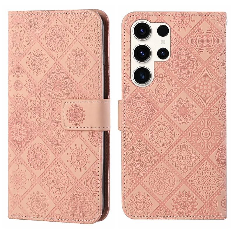 Για Samsung Galaxy S24 Ultra 5G Ethnic Style ανάγλυφο μοτίβο δερμάτινη θήκη τηλεφώνου (ρόζ)