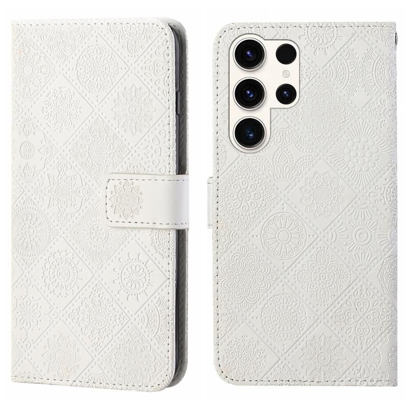 Για Samsung Galaxy S24 Ultra 5G Ethnic Style ανάγλυφο μοτίβο δερμάτινη θήκη τηλεφώνου (Λευκό)